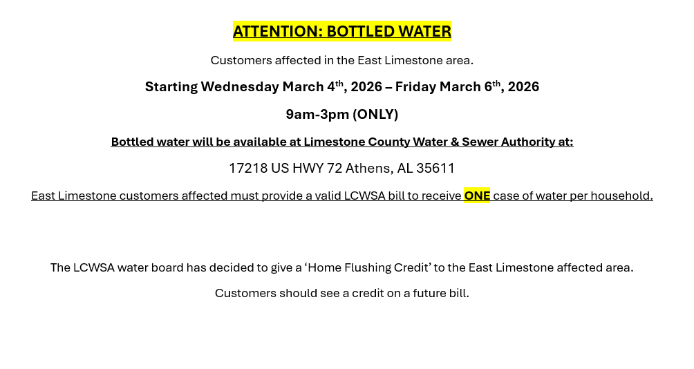 Click to see a list of helpful tips and tricks regarding your billing/payments and other aspects of your service with Limestone County Water.